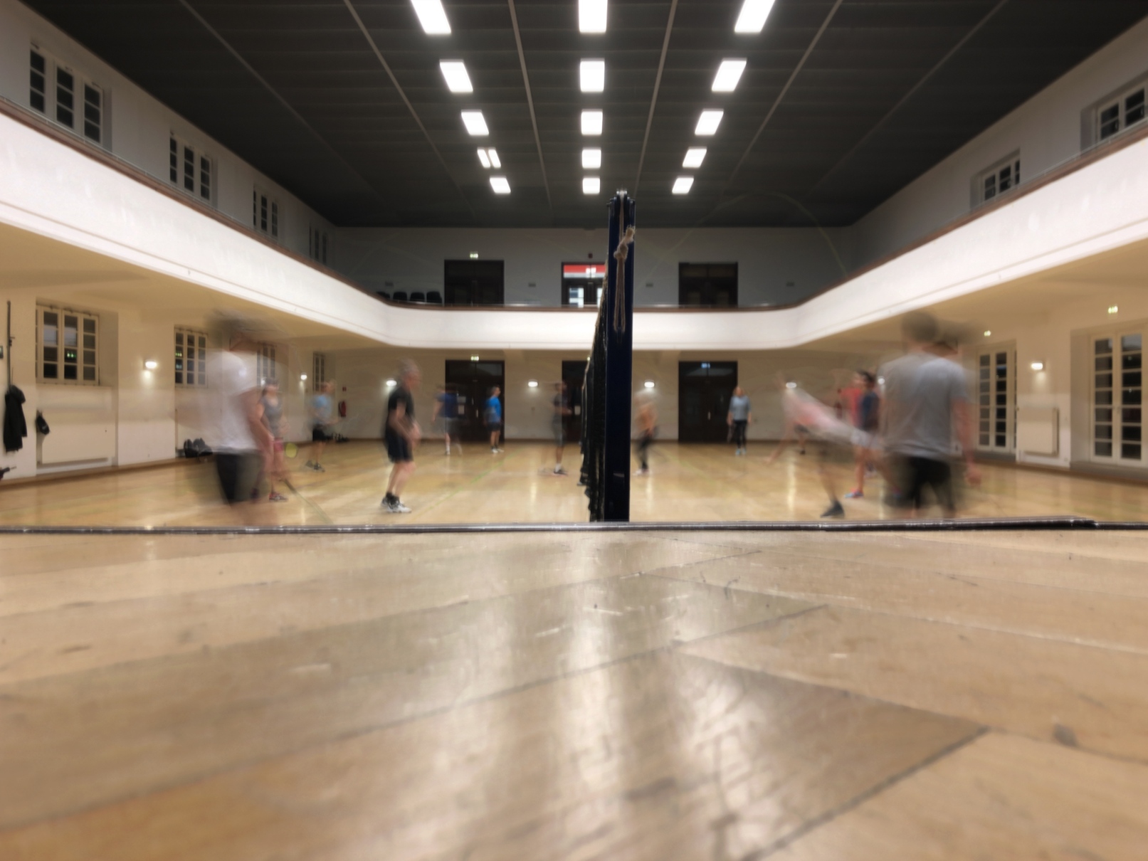 Unsere Turnhalle (die sogenannte "Alte RT-Halle" am Oberen Wöhrd in Regensburg, siehe Anfahrtsbeschreibung) bietet uns dabei ideale Bedingungen: auf vier großzügig angelegten Spielfeldern können bis zu 16 Personen gleichzeitig Badminton spielen. Einen kleinen Eindruck davon vermitteln Ihnen folgende Fotos.